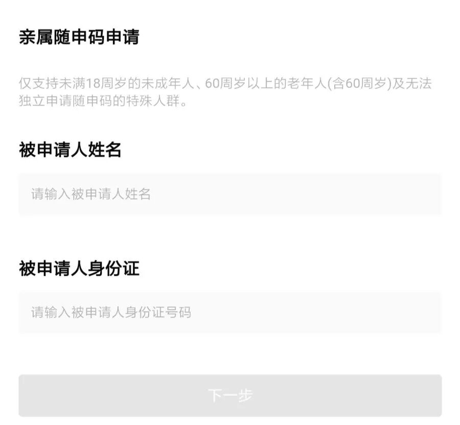 4、点击“亲属随申码”申请,填写相应资料